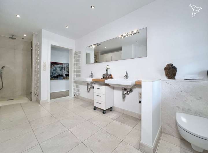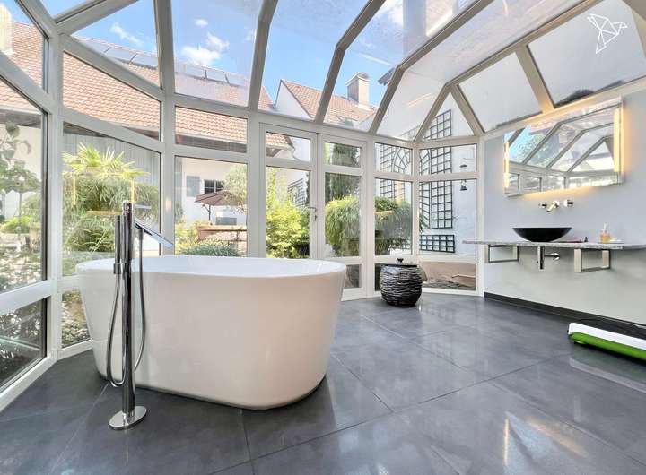 HAUPTHAUS - Historische Barocktür als Hauseingang - Arbeits- oder Gästezimmer im Erdgeschoss - Modernes Duschbad im Erdgeschoss - Separates Esszimmer - Hochwertige Bulthaup-Einbauküche mit Granitoberflächen und Gaggenau-Geräten - Schlafzimmer mit angrenzendem Ankleidebereich im Obergeschoss - Stilvoll gestaltetes Badezimmer mit zwei Waschbecken und moderner Ausstattung - Lichtdurchfluteter Wohnbereich mit Kamin und Zugang zum ausgebauten Dachgeschoss - Große, doppelt verglaste Fenster für helle Räume - Hochwertige Naturstein- und Holzböden - Kleiner Weinkeller im Untergeschoss NEBENHAUS - Klare Raumaufteilung und komfortable Ausstattung - Erdgeschoss mit modernem Bad / Wellnessbereich - Große Sauna - Freistehende Badewanne - Beheizter Fußboden - Großzügige, voll ausgestattete Wohnküche - Traditioneller Stein-Holzofen für eine besondere Atmosphäre - Obergeschoss mit ca. 50 m² großem Wohnbereich - Separates Schlafzimmer - Innenräume mit Fliesen- und Holzfußböden SCHEUNE - Waschküche / Hauswirtschaft - Abstellraum - Werkstatt - Holzpelletheizung - Solartherme für Warmwasser AUßENBEREICH - Innenhof mit Terrasse - Hinterhof mit Gartenbereich - Mainsandsteine im Hof - E-Ladestation - Brunnen MODERNISIERUNGEN - Haupt und Nebenhaus Kernsaniert (1980 und 1984) - Badezimmer EG & 1.OG Haupthaus (1990) - Innenausbau - Fußboden Flur & Büro (1990) - Sanierung Saunabadezimmer (2006) - Neue Mauer Hinterhof (2025)