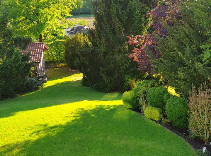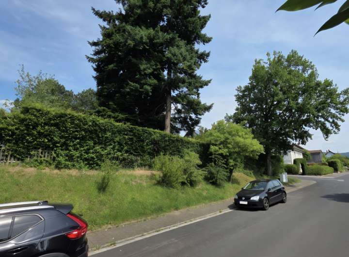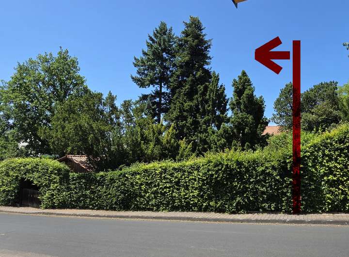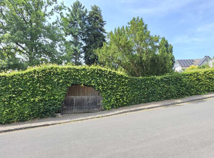 Das 790m² große Baugrundstück ist auf drei Seiten mit einer alten, hohen Buchenhecke umgeben. Es liegt in einer sehr ruhigen und gepflegten Wohngegend von Altenhaßlau.