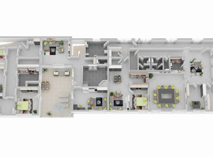 Die zentrale Lage macht das Gebäude besonders interessant für gewerbliche Nutzer, gleichzeitig eröffnet die flexible Gebäudestruktur auch Potenzial für alternative Nutzungskonzepte. So ist eine Umnutzung zu reiner Wohnfläche grundsätzlich möglich.