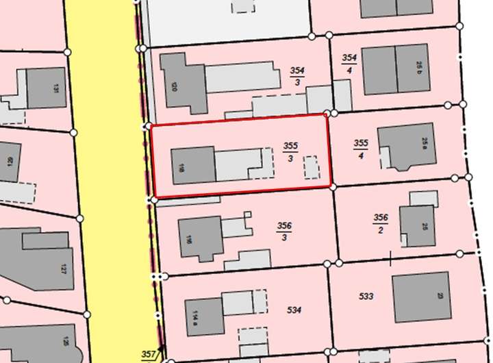Bei dem Baugrundstück (Flurstück 355/3, siehe Flurkarte rot markiert) handelt es sich um ein 555m² Grundstück mit rechteckigem Zuschnitt.