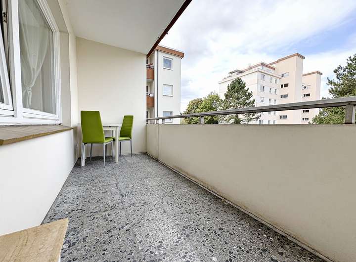 Ein sonniger Balkon gibt Ihnen die Möglichkeit, die Feierabende mit schöner Aussicht im Freien zu genießen.