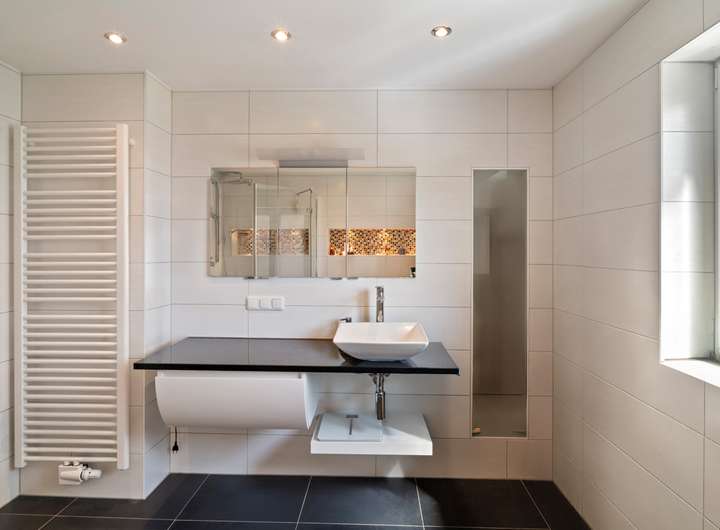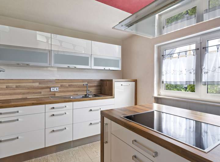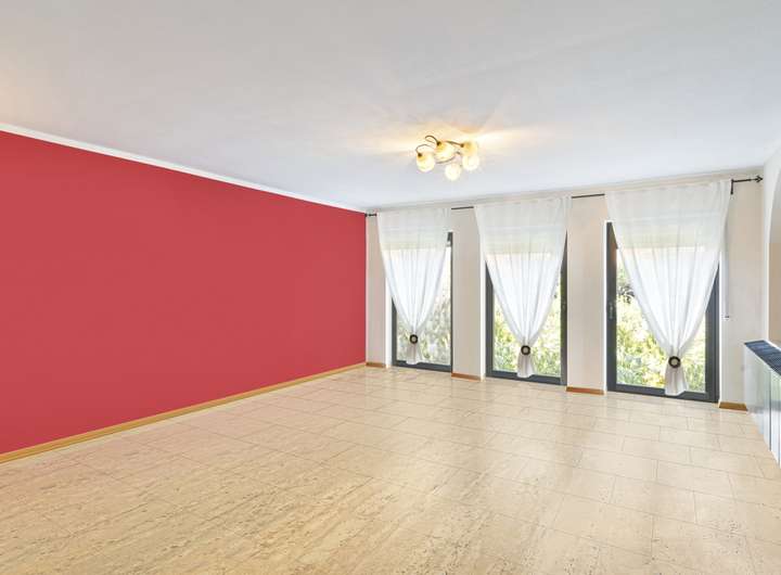 Insgesamt zeigt sich ein gepflegtes, modernes Haus, das zwei Wohnstile vereint: klar und geradlinig im Erdgeschoss, rustikaler mit offener Holzbalkendecke im Obergeschoss.
