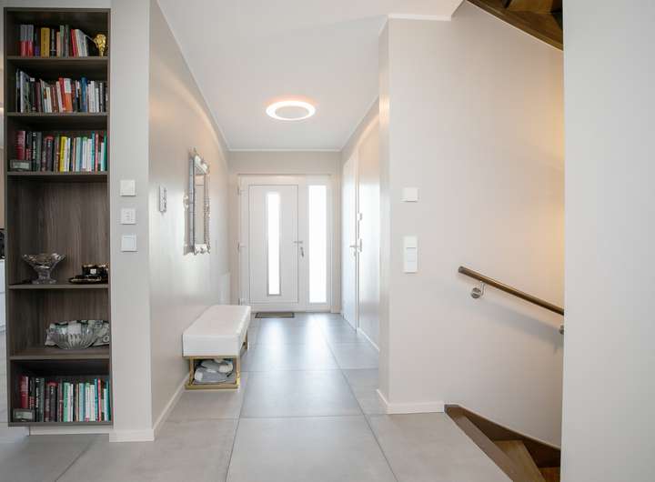 Im Erdgeschoss erwartet Sie ein offener, heller Wohn- und Essbereich, in den sich die hochwertige Einbauküche harmonisch integriert. Kochen, Essen und Wohnen gehen hier fließend ineinander über und schaffen ein kommunikatives Zentrum des Hauses. Der Wohnbereich ist dabei leicht separiert und bietet einen gemütlichen Rückzugsort mit direktem Zugang zur sonnigen Terrasse und in den nach Süden ausgerichteten Garten – ideal für entspannte Stunden im Freien.