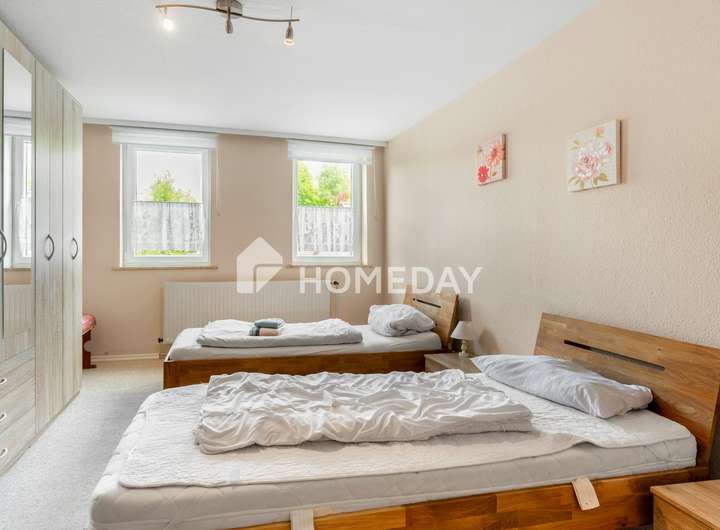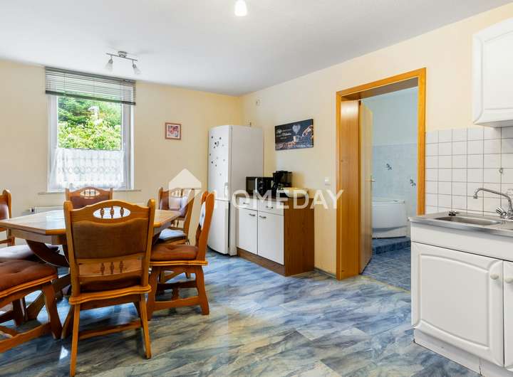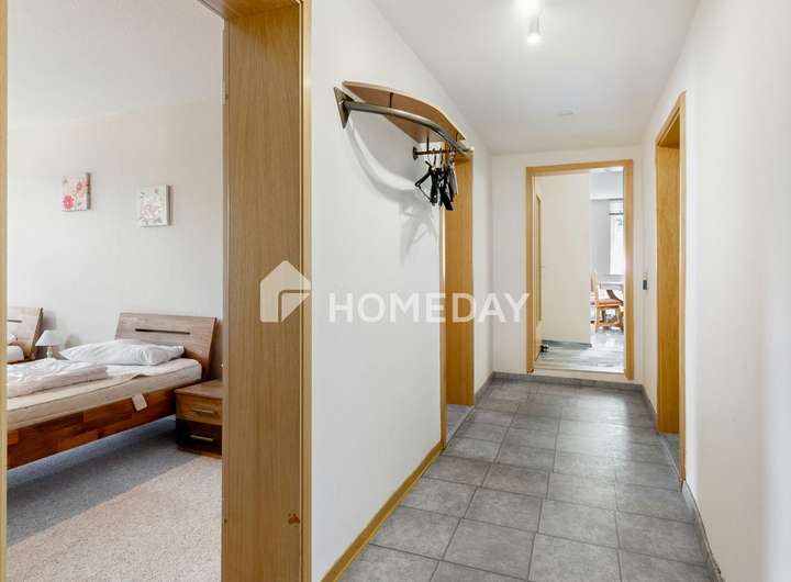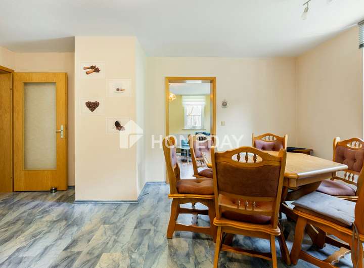 Die Ausstattung der Wohnräume ist funktional und vielseitig: Je nach Einheit wurden Fliesen, Laminat oder Auslegware verlegt – in den Ferienwohnungen ausschließlich pflegeleichte, teppichfreie Böden. Für eine behagliche Atmosphäre sorgt die Gaszentralheizung aus dem Jahr 2009, die über Heizkörper alle Räume effizient mit Wärme versorgt. Die Kunststofffenster mit Zweifach-Verglasung tragen zusätzlich zur Energieeffizienz bei.