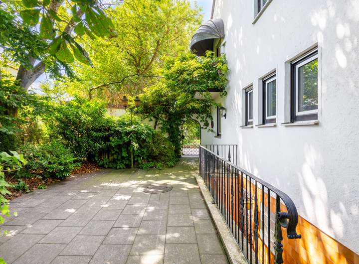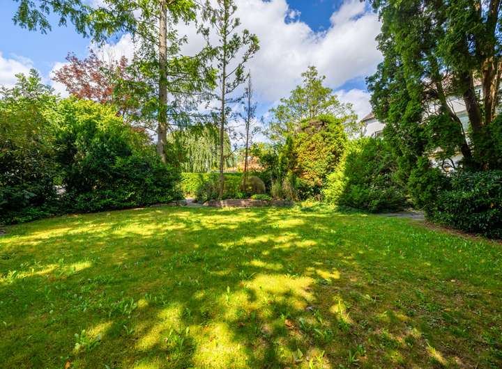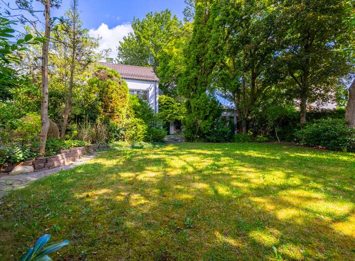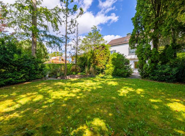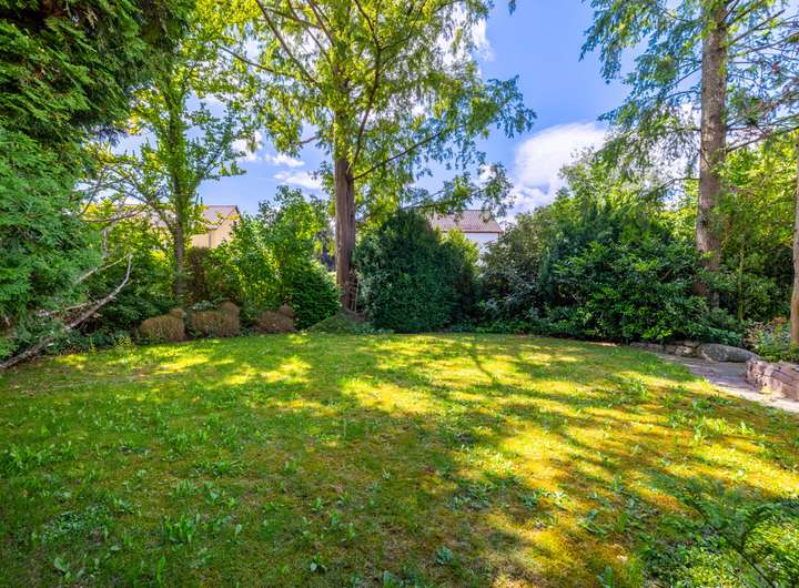 Das Grundstück ist vollständig eingewachsen und von einem beeindruckenden alten Baumbestand umgeben. Dieser sorgt nicht nur für ein unvergleichliches, parkähnliches Ambiente, sondern auch für absolute Privatsphäre. Selbst von der Straße und von den Nachbargrundstücken ist der Garten nicht einsehbar. Die weitläufigen Rasenflächen bieten Raum für Gestaltungsideen – von großzügigen Terrassen über einen Pool bis hin zu einem prachtvollen Zier- oder Nutzgarten.
