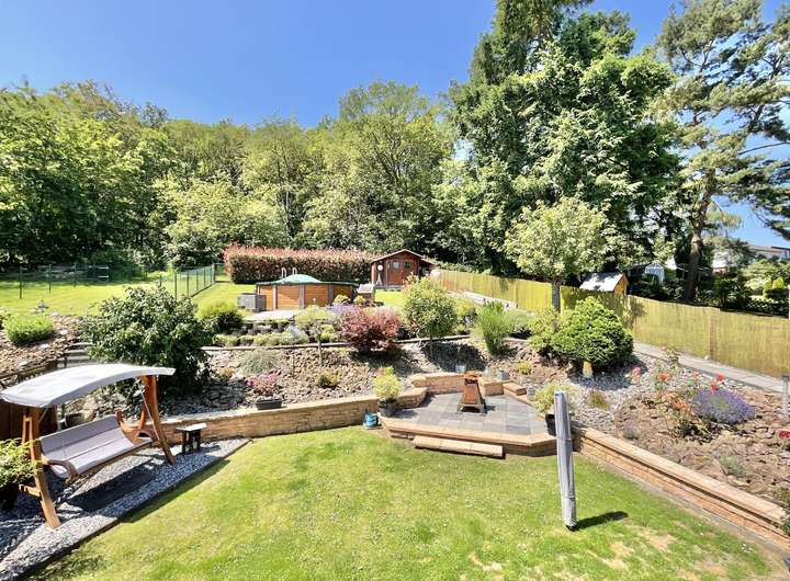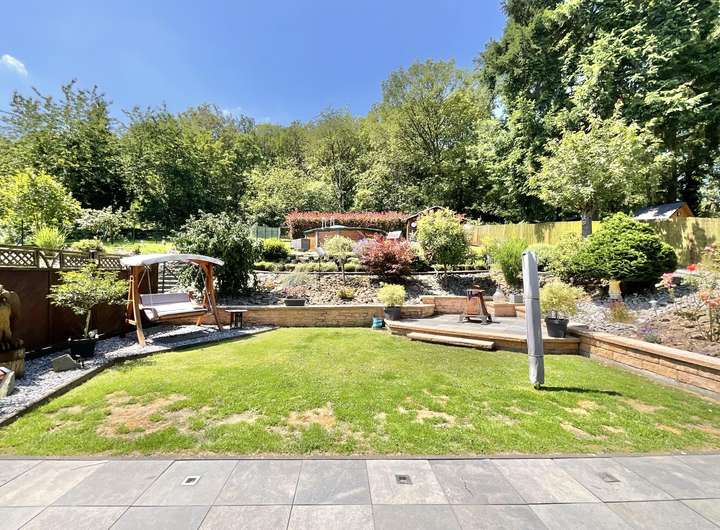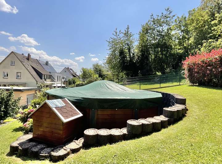 Besonders hervorzuheben ist die sehr gepflegte und hochwertig angelegte Gartenfläche, die sowohl für entspannende Stunden im Freien als auch für gesellige Zusammenkünfte perfekt geeignet ist. Ein Gartenhaus bietet Platz für Gartengeräte und der Pool lädt an heißen Tagen zur Erfrischung ein. Diese Oase des Wohlfühlens verspricht unvergessliche Momente im Kreise von Familie und Freunden.