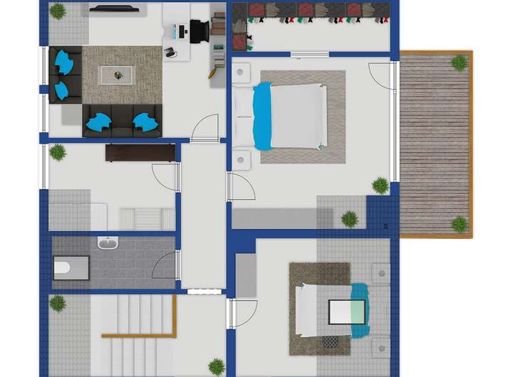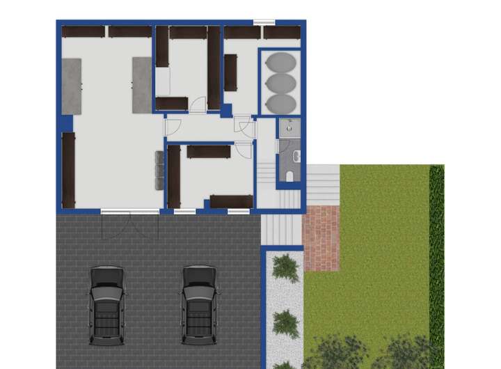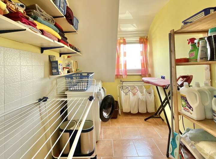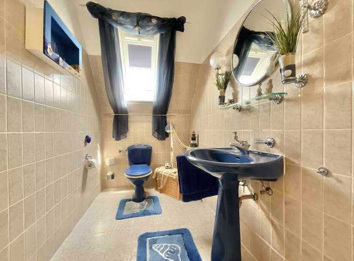 Das Wohnkonzept umfasst insgesamt 5 Zimmer, die eine flexible Nutzung ermöglichen. Die drei Schlafzimmer bieten ausreichend Platz für die ganze Familie oder Gäste. Ein helles und einladendes Badezimmer sowie ein praktisches Gäste-WC sorgen für Komfort. Der Hauswirtschaftsraum bietet zusätzlichen Stauraum und Funktionalität. Im Keller befindet sich ein weiteres Duschbad, das für zusätzliche Bequemlichkeit sorgt.