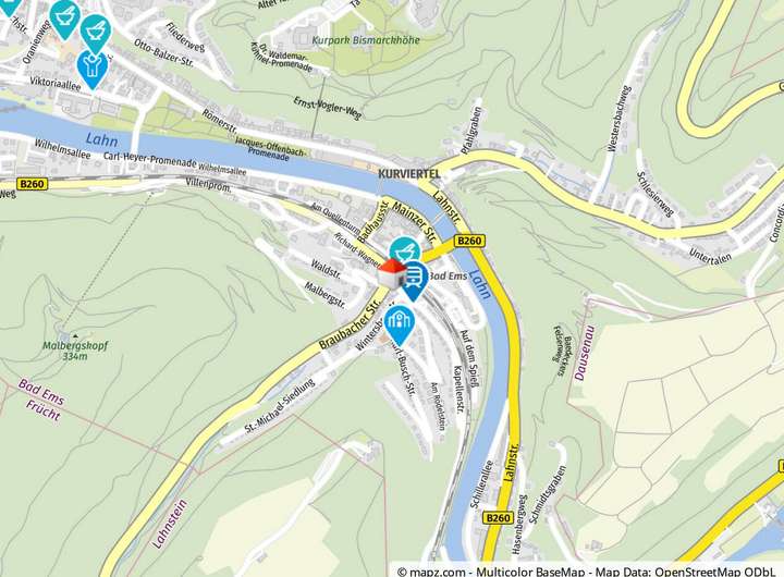 Die Immobilie befindet sich in praktischer Lage nahe dem Hauptbahnhof von Bad Ems und ist damit gut an den öffentlichen Nah- und Fernverkehr angebunden. Das Stadtzentrum mit seinen Geschäften, Cafés und kulturellen Angeboten ist in wenigen Minuten erreichbar.