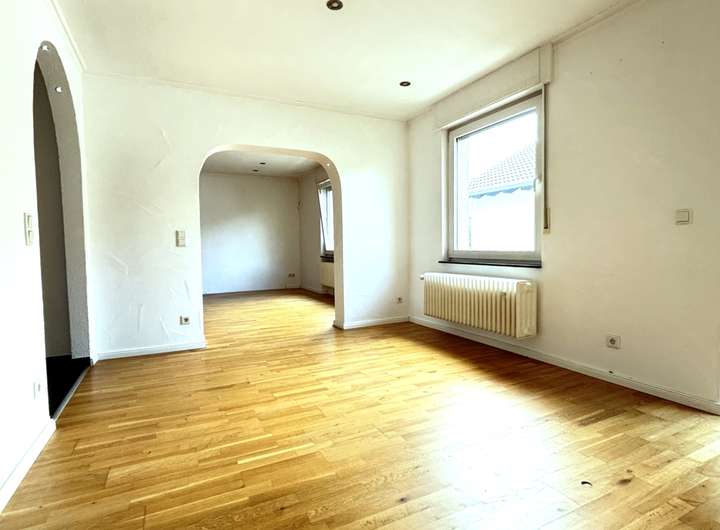 Das Haus befindet sich in gepflegtem Zustand. Es ist voll unterkellert und verfügt über einen kleinen Garten sowie über zwei praktische PKW-Stellplatz.