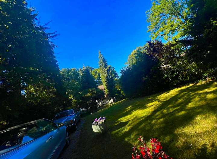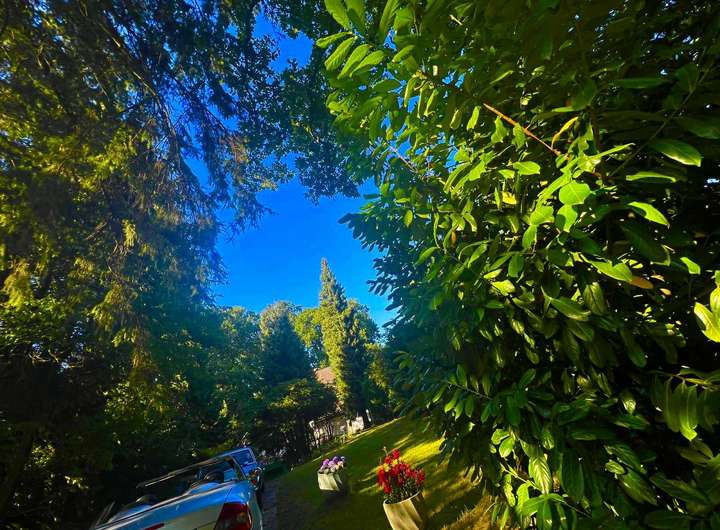 Das traumhaft schöne Grundstück ist mit teilweise altem Baumbestand und diversen Strauchpflanzen bewachsen. Für den Aufenthalt im Freien steht eine nach Süden ausgerichtete Terrasse, mit direktem Zugang aus dem Wohnbereich, zur Verfügung. Für das Abstellen von Autos sind eine große Tiefgarage sowie weitere Stellplätze vor dem Haus vorhanden.