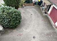 Im Innenhof gibt es zwei Einzelgaragen und eine freie Parkfläche mit Platz für drei bis vier Autos. Außerdem befindet sich dort ein kleiner Werkraum. Der Hofbereich könnte in Abstimmung mit der Stadt ebenfalls überbaut werden. Hier könnte ein weiteres Wohnhaus entstehen.