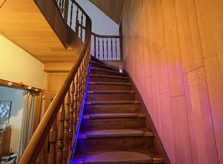 Diese Wohnung hat ca. 90m² Wohnfläche. Ebenfalls vom ersten Obergeschoss aus erreichen Sie eine ausgefallene Maisonettewohnung mit ca. 150m² Wohnfläche und mit vier Zimmern, Küche und Bad.