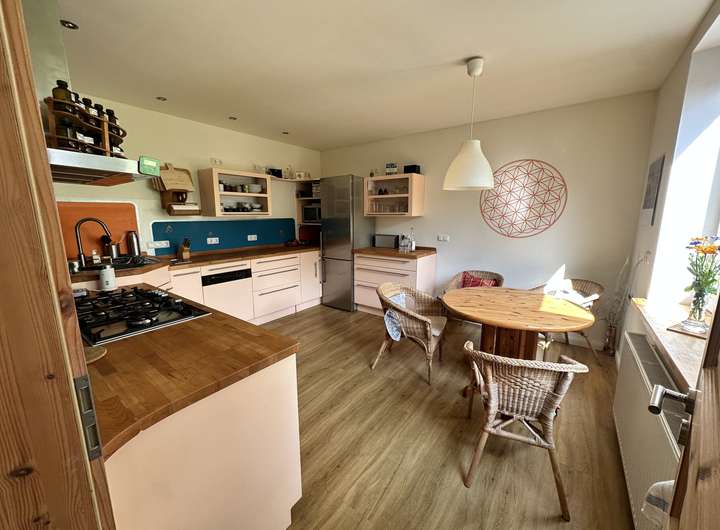 Potential ist hier keine Floskel, denn dieses Wohnhaus liefert gute Ansätze für die Beendigung einer mit viel Elan begonnenen Modernisierung. Das sich diese lohnt, belegen die hellen und freundlichen Wohnräume im Dachgeschoss, welches seit 2016 neu gestaltet wurde. Und auch die Küche mit dem herrlichen Blick in den großen Garten sorgt für ein schönes Ambiente. In den weiteren Räumen des Erdgeschosses besteht allerdings Modernisierungsbedarf. Kühle Rechner wird dagegen interessieren, dass die moderne Brennwertheizung und eine überarbeitete Elektroanlage aktuelle Standards erfüllen. Zudem wird das großzügige Raumangebot durch ausreichende Nebenanlagen, ein Doppelcarport sowie eine Fertiggarage ergänzt.