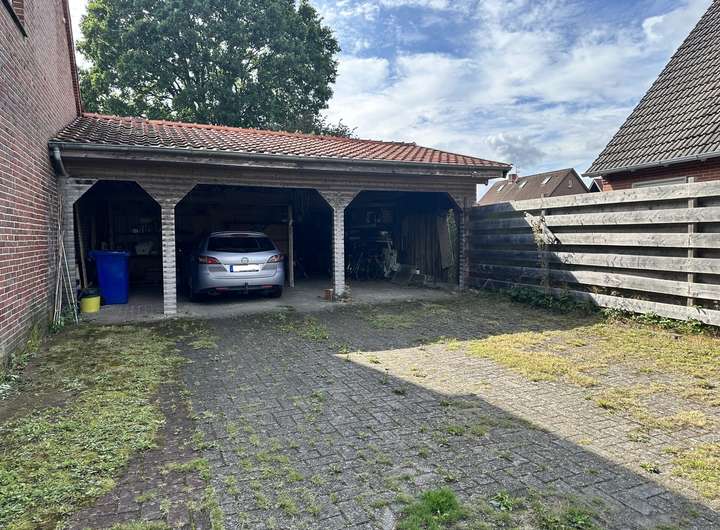 - Carportanlage für 2 PKW´s, zusätzlich eine Fertiggarage