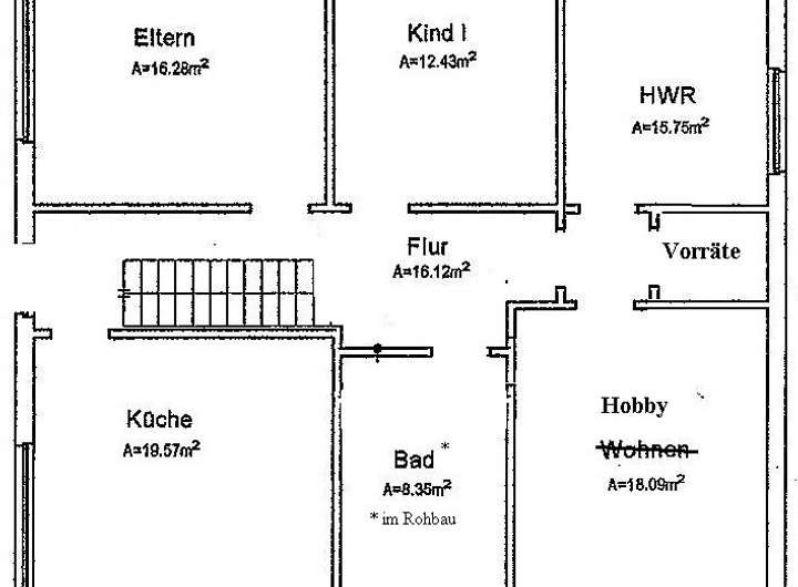 - Erdgeschoss: renovierungsbedürftig, außer Flur und Küche