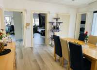 Über einen separaten Hauseingang erreichen Sie die großzügige 5,5-Zimmer-Wohnung im Obergeschoss. Sie überzeugt mit viel Platz und einer gelungenen Raumaufteilung: