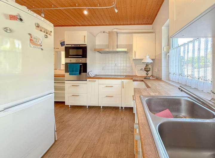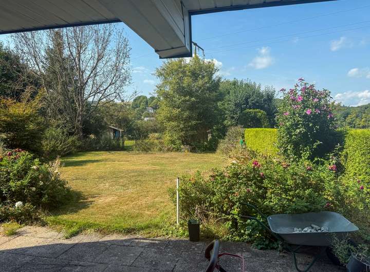 Der gepflegte Garten überzeugt mit viel Grünfläche und bietet durch den im Haus integrierten Schuppen zusätzliche Abstellmöglichkeiten. Eine 1.000-Liter-Zisterne, die an die Regenrinne angeschlossen ist, sorgt für umweltfreundliche Gartenbewässerung. Zwei Stellplätze direkt vor der Tür runden das Angebot ab.
