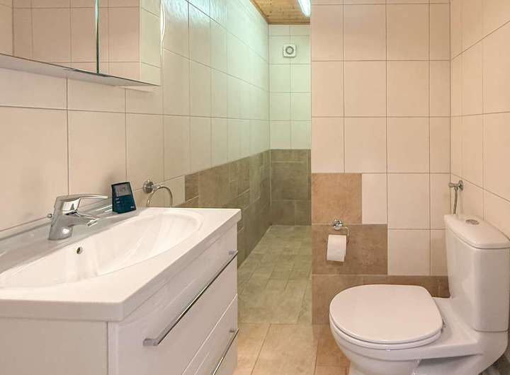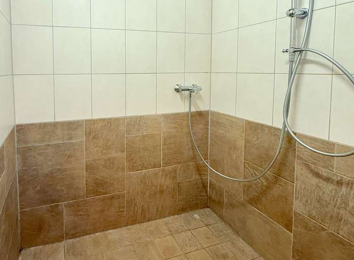 Modernes, bodentiefes Duschbad im Untergeschoss