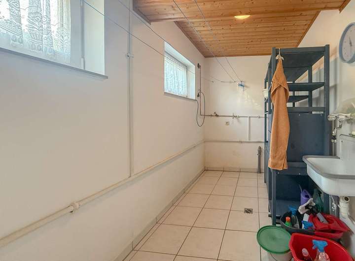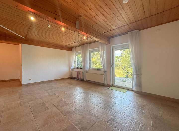 Im Untergeschoss verbirgt sich ein echtes Highlight: Ein großer, vielseitig nutzbarer Raum, der sich ideal als Schlafzimmer, Hobbyraum oder sogar als eigenständiges 1-Zimmer-Apartment eignet. Dank bereits vorhandener Anschlüsse ist ein Ausbau zur Einliegerwohnung oder Ferienwohnung problemlos möglich. Ein modernes, bodentiefes Duschbad, eine Waschküche sowie der Hausanschlussraum mit zusätzlichem Stauraum ergänzen diese Ebene. Vom Untergeschoss gelangen Sie zudem direkt auf die großzügige Terrasse mit Blick in den Garten, die zum Sonnen, Grillen oder geselligen Beisammensein einlädt.