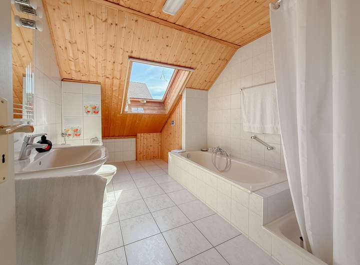Badezimmer mit Badewanne und separater Dusche im Obergeschoss
