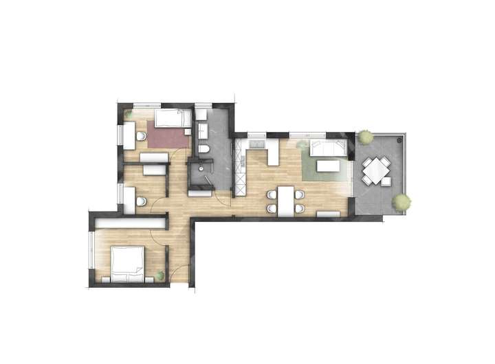• Großformatfliesen und Echtholzparkettböden
