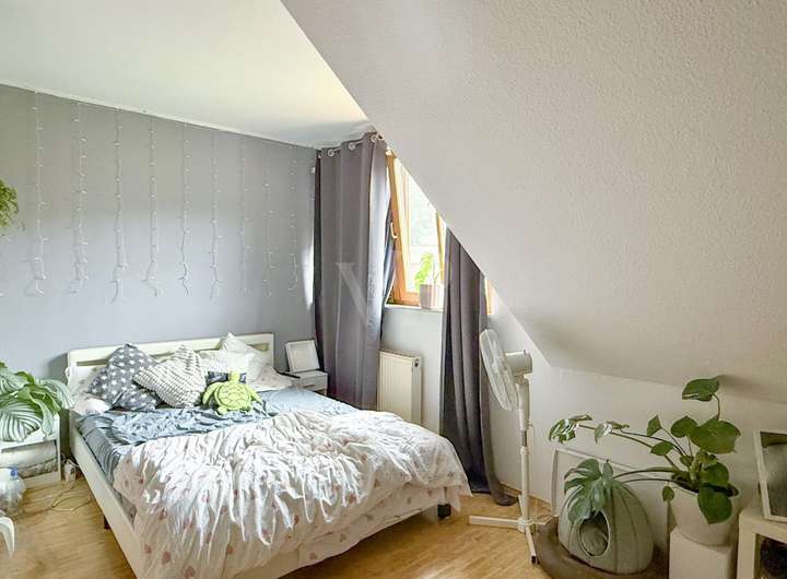 Im Dachgeschoss steht ein weiteres Zimmer zur Verfügung, nutzbar zum Beispiel als zusätzliches Schlafzimmer, Büro oder Hobbybereich. Auch die im Jahr 2019 erneuerte Gasheizung ist hier untergebracht.