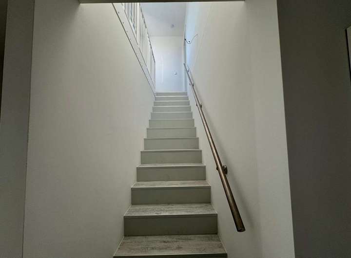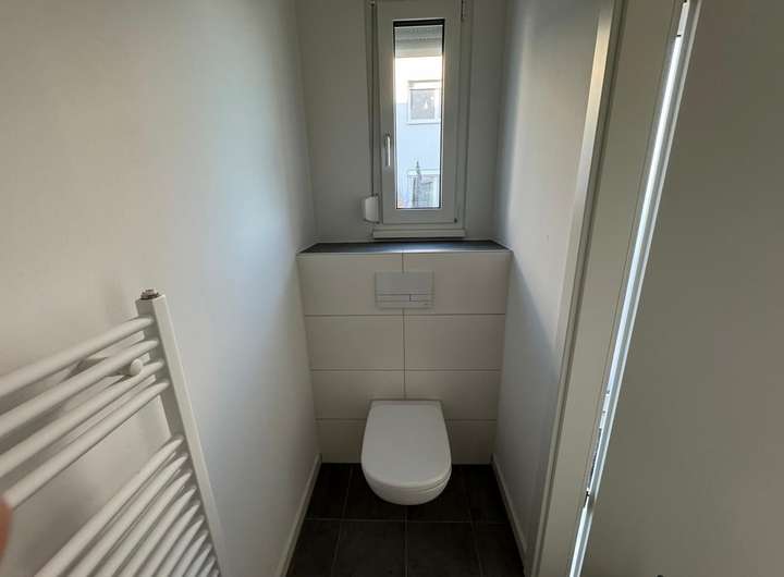 Beim Betreten der Diele befindet sich gleich rechter Hand eine Gästetoilette, rechts ein Technikschrank. Im gesamten Haus über alle Stockwerke wurde ein wertiger heller Vinylboden mit Trittschalldämmung verlegt.