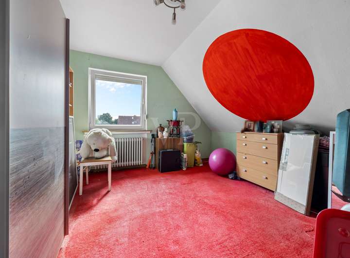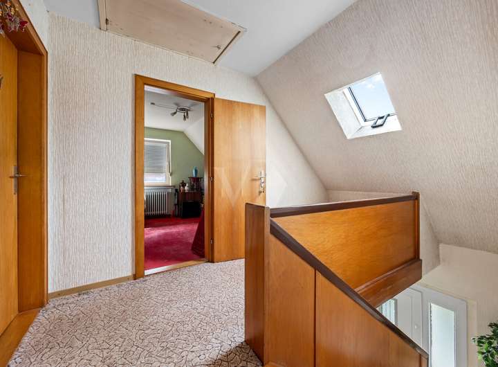 Im Obergeschoss erwarten Sie insgesamt drei individuell nutzbare Räume. Zwei der Zimmer wurden bereits ausgebaut und bieten angenehme Rückzugsorte – sei es als Schlafzimmer, Kinder- oder Arbeitszimmer. Ein weiteres Zimmer befindet sich im unfertigen Zustand, was Ihnen die Möglichkeit gibt, Ihre eigenen Vorstellungen und Wünsche einzubringen. Der Spitzboden ist zusätzlich über eine Zugtreppe erreichbar und eignet sich hervorragend als Staufläche.