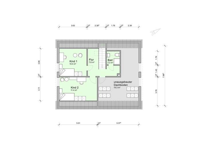 • Spitzboden über Zugtreppe als zusätzliche Staufläche nutzbar