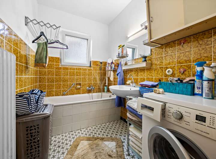 • Barrierearmes WC und Badezimmer mit Wanne im Erdgeschoss