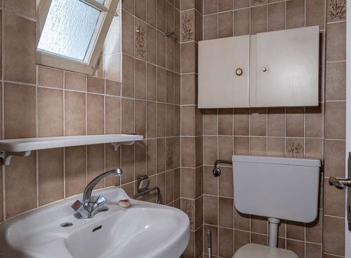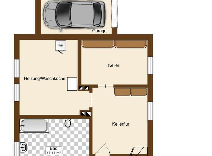 Das Haus ist voll unterkellert und bietet neben einer Waschküche und mehreren Lagerräumen ein weiteres Badezimmer mit Badewanne sowie einen direkten Zugang zur Garage und den Garten. Beheizt wird die Immobilie über eine 2019 erneuerte zentrale Gas-Brennwerttherme. Elektroinstallation und Wasserleitungen sind in die Jahre gekommen; ebenso sind die Fenster erneuerungsbedürftig.