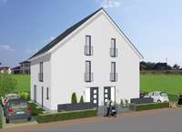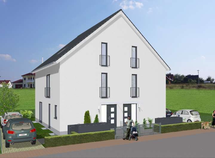 Diese beiden giebelseitig getrennten Doppelhaushälften werden in Massivbauweise erstellt und mit moderner Heizungs- und Lüftungstechnik ausgestattet.