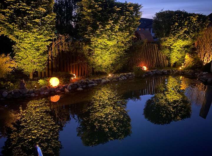 Ein wahrer Rückzugsort ist der Garten. Er ist pflegeleicht angelegt, eingezäunt, nicht einsehbar und verfügt über mehrere Terrassen und diverse Sitzmöglichkeiten. Über den gepflasterten Gartenweg können der Schwimmteich und das Gartenhaus erreicht werden.