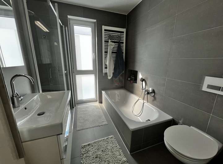 • Bad mit Badewanne und ebenerdiger Dusche (Regenkopf)