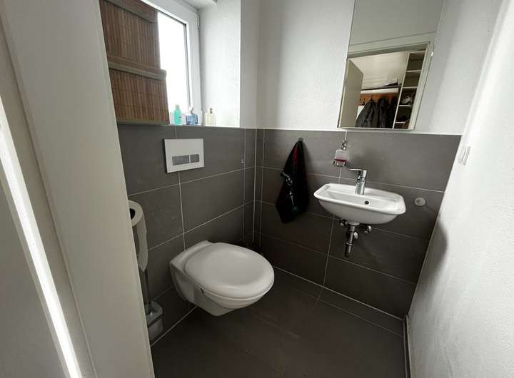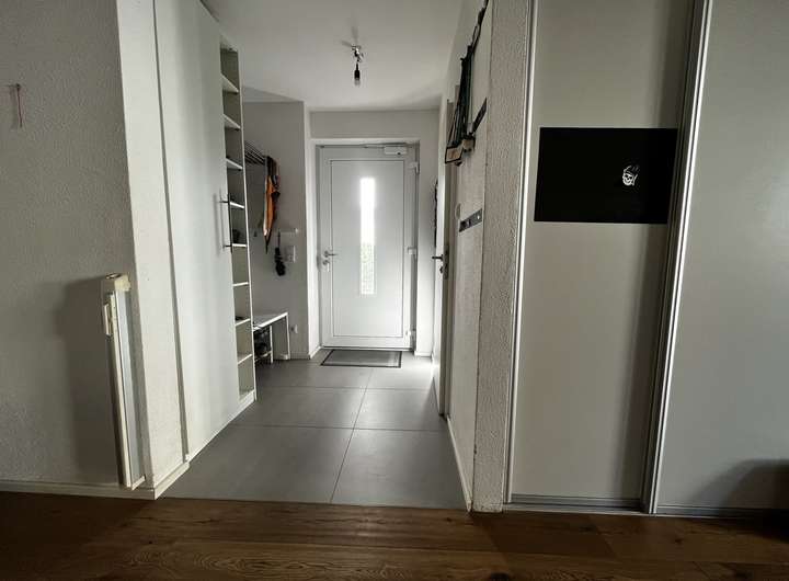 • Einheitliche, großformatige Fliesen in Eingangsbereich, Gäste-WC & Bad