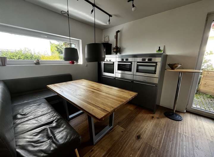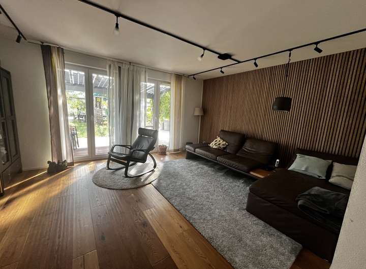 Energetisch positive Doppelhaushälfte mit 155 m² Wohnfläche, 13 kWp Solaranlage und Wärmepumpe. Nahezu energieautark, mit Kamin, großer Terrasse und Wallbox. Familienfreundlich, hundefreundliches Grundstück, Top-Lage nahe Natur, S-Bahn und Autobahnen.
