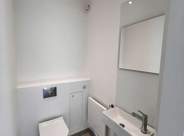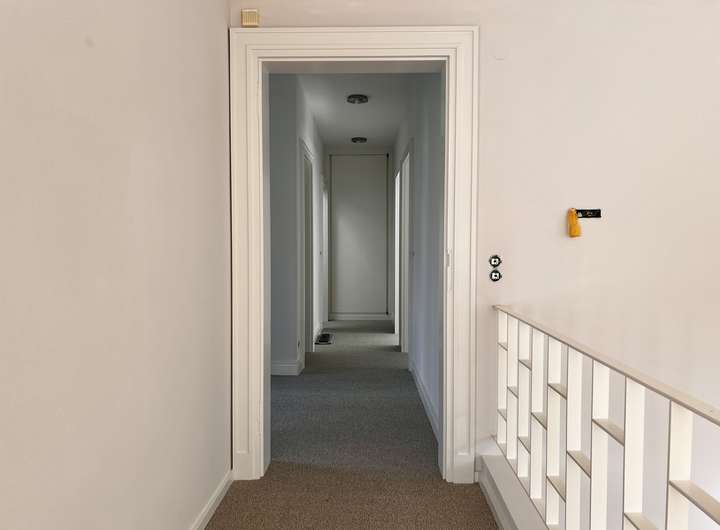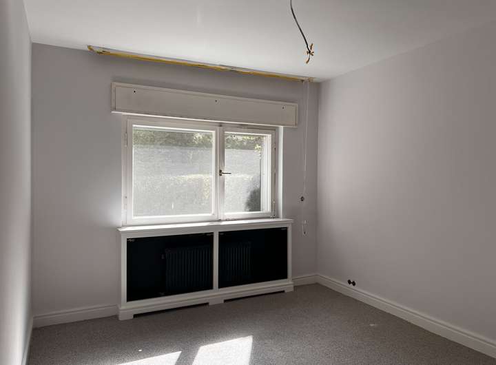 Der Innenbereich ist funktional und lichtdurchflutet. Die Haupträume bestehen aus einem Wohnzimmer, zwei weiteren Zimmern, einer Küche mit Einbauküche, einem Bad sowie einem Gäste-WC. Maßgefertigte Einbauschränke im gesamten Haus sorgen für zusätzlichen Stauraum. Das tagesbelichtete Untergeschoss mit Wasch- und Lagerraum sowie zwei weiteren Zimmern, bietet außerdem flexible Nutzungsmöglichkeiten. Der Kellerbereich, der Eingangsbereich und die Küche sind vollständig mit Granitplatten ausgekleidet. Das Wohnzimmer verfügt über einen Eichenparkettboden, während der Flur und die beiden weiteren Zimmer mit Teppichboden ausgelegt sind. Über das mitbringen von Haustieren wird im Einzelfall entschieden. Das Haus wird teilmöbliert (Einbauschränke- und Küche) vermietet und verfügt über eine moderne Niedertemperaturheizung. Es wird ausschließlich an Nichtraucher vermietet.