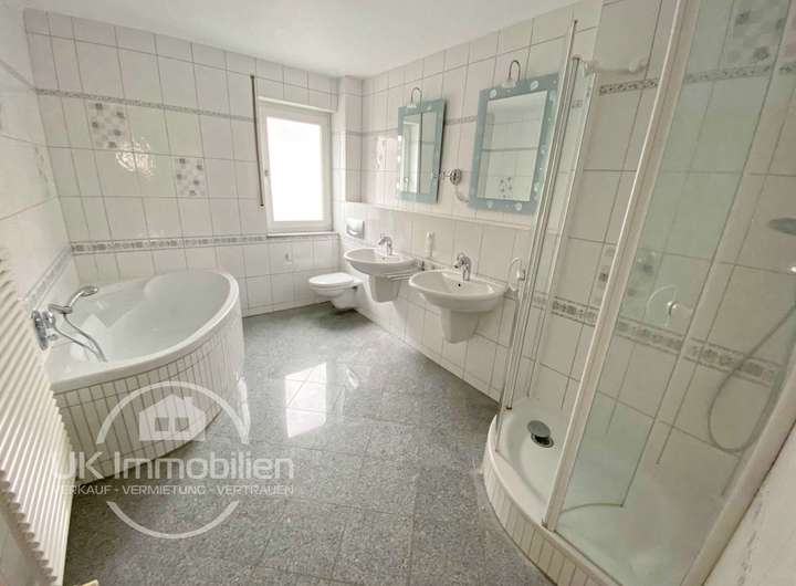 OG: mit Eck-Badewanne, Dusche & Doppelwaschbecken, Handtuchheizkörper