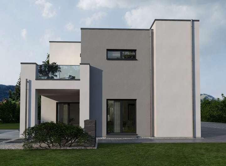 Eines der zahlreichen Highlights unseres Black Label 22 ist der integrierte Carport, der es den künftigen Eigenheimbesitzern nicht nur ermöglicht, das Haus trockenen Fußes zu betreten. Zudem befindet sich unmittelbar darüber eine große Dachterrasse, die schnell zum idealen Lieblingsplatz avancieren kann. Doch auch im Inneren kann das rund 256 m² große Haus, das aus rechteckigen Elementen unterschiedlicher Größe besteht, mit zahlreichen Vorteilen überzeugen. Im Erdgeschoss nimmt das Wohn-Ess-Zimmer mit integrierter Küche fast den kompletten Raum ein und besticht durch seine offene Gestaltung. Ebenfalls Parterre: Ein Hauswirtschaftsraum sowie Gäste-WC und der große Carport, an den sich unmittelbar ein Abstellraum anschließt. Im Obergeschoss gehört die rechte Haushälfte den kleinen Hausbewohnern. Hier befinden sich drei Kinderzimmer, die alle über einen Zugang zur großen Dachterrasse verfügen. Glasgeländer ermöglichen einen ungetrübten Blick in den Garten. Die linke Haushälfte bildet unterdessen das Reich der Eltern. Diesen steht ein großer Schlafbereich mit Ankleidezimmer und Bad sowie ein eigener Balkon zur Verfügung.