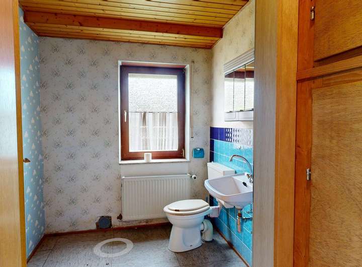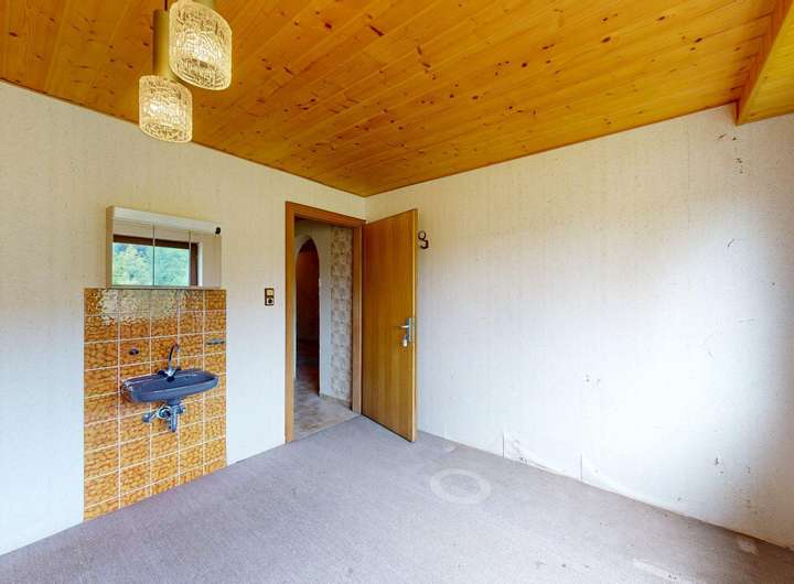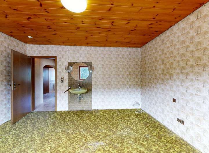 Das Haus verfügt über ein Wohn- Esszimmer, zwei Schlafzimmer, ein Badezimmer und einem separaten WC, die Öl-Heizung sorgt für wohlige Wärme an kalten Tagen. Alle Räumlichkeiten im Wohnbereich sind renovierungsbedürftig, bieten jedoch viel Potenzial zur individuellen Gestaltung. Die Energieeffizienzklasse F zeigt Verbesserungsmöglichkeiten auf, die durch die Modernisierung der Heizung im Jahr 2019 bereits begonnen wurden.