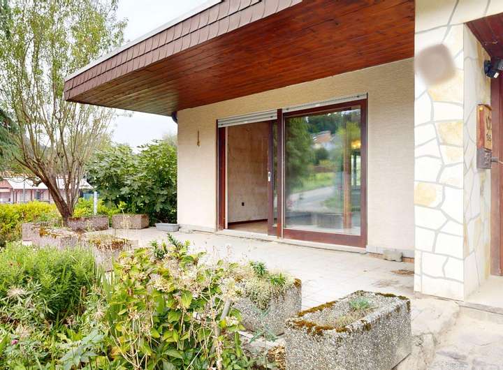 Dieser Bungalow aus dem Jahr 1981 besticht durch seine Massivbauweise mit Walmdach und tollem Blick zur Burg Landeck. Mit einer Wohnfläche von 110.15 m² und einer Grundstücksfläche von 654 m² bietet das Gebäude viel Platz zum Wohnen und Entspannen. Eine Terrasse lädt ein, schöne Stunden im Freien zu verbringen. Zwei Parkplätze und zwei Garagen sorgen für ausreichende Parkfläche. Der Keller mit einer Fläche von ca.100 m² bietet zusätzlichen Stauraum. Auf dieser Etage wurde nachträglich ein zusätzliches Schlafzimmer, sowie eine Toillette installiert.