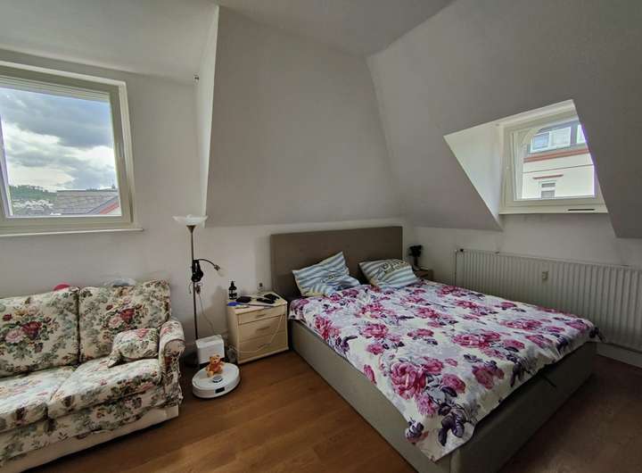 Das Dachgeschoss beherbergt eine gemütliche Wohnung (3 ZKBB), ideal für kleine Familien oder Paare.