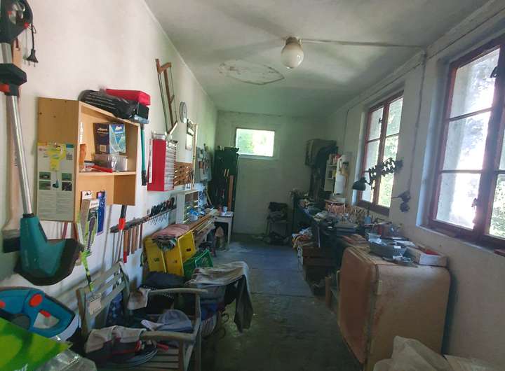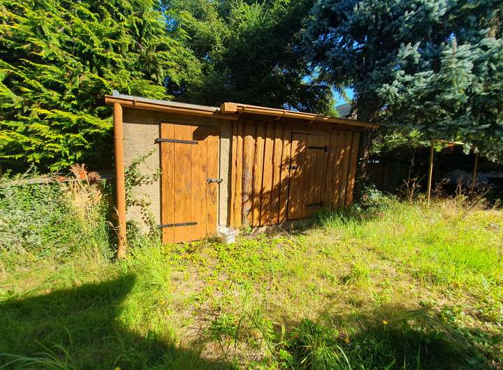 Auf dem ca. 1.404 m² großem Grundstück befindet sich eine große Garage mit elektrischem Tor. Weiterhin finden Sie hier zahlreiche Schuppen und eine Werkstatt. Der sich im hinteren Bereich befindende Garten liegt sehr ruhig.