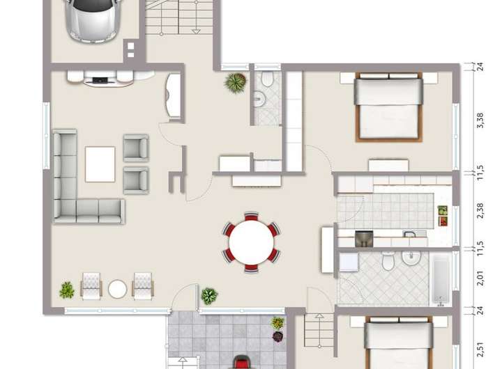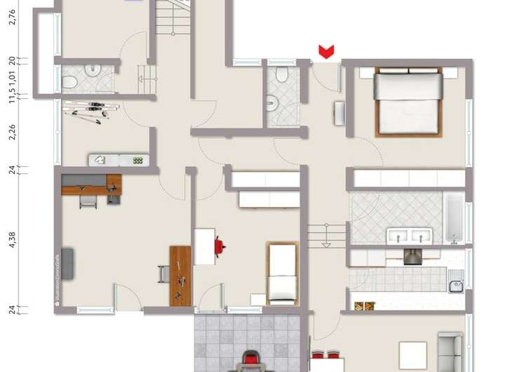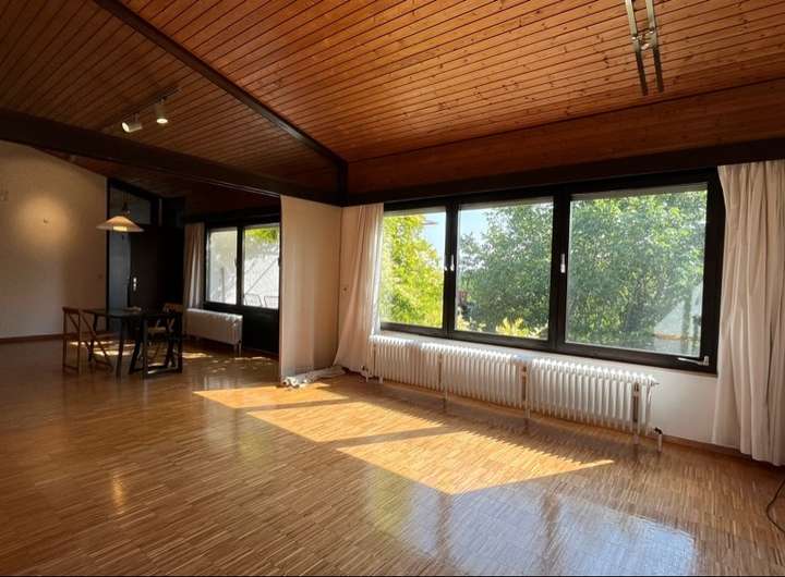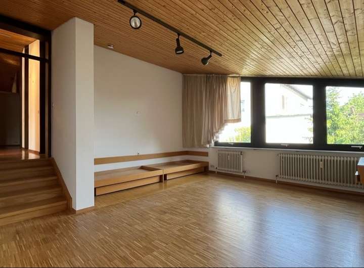 An den Eingangsbereich, der ca. 113 m² Hauptwohnung, schließt sich das lichtdurchflutete Wohnzimmer, mit Zugang zur Essdiele, an. Bedingt durch die Hanglage des Objekts, haben Sie von hier einen bequemen Zugang auf den sonnigen Südbalkon. Im weiteren Verlauf gelangen Sie, vorbei an dem hellen Kinderzimmer, zur funktionalen Küche. Das großzügige Badezimmer und das Schlafzimmer komplettieren den Grundriss sinnvoll.