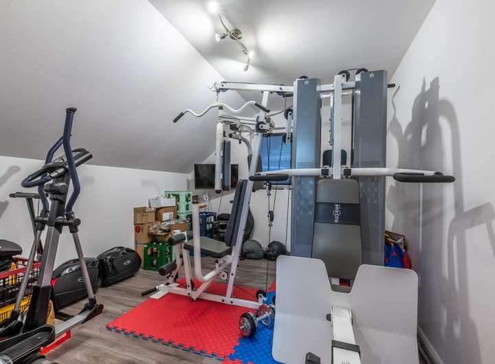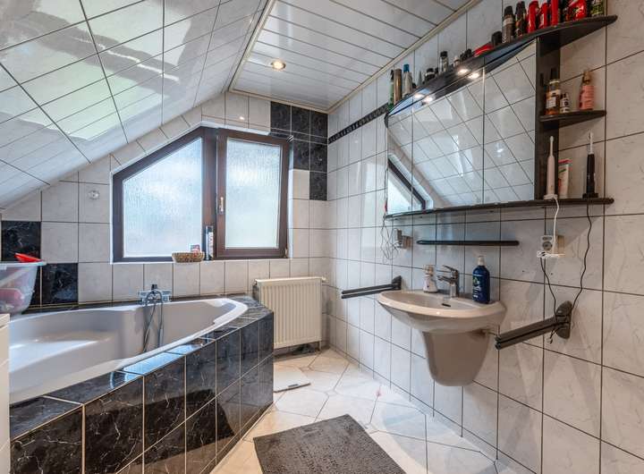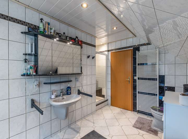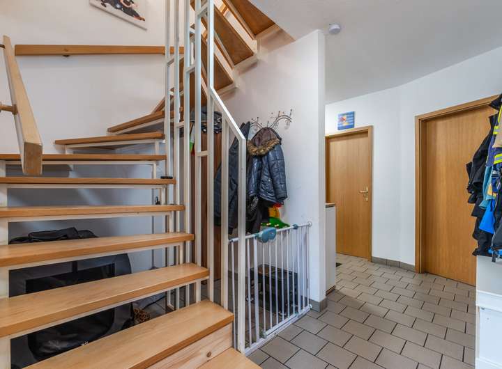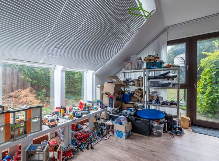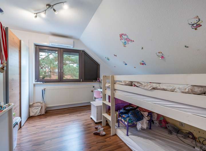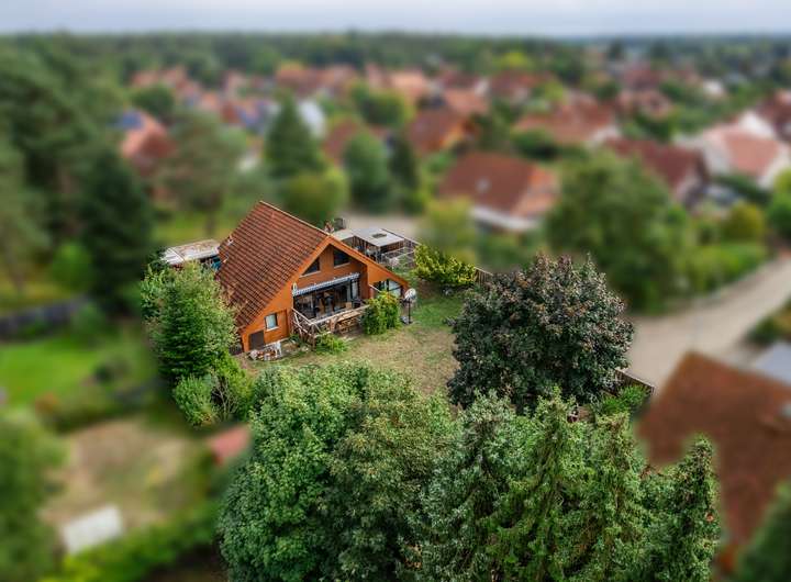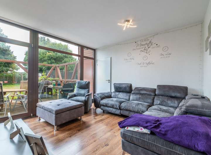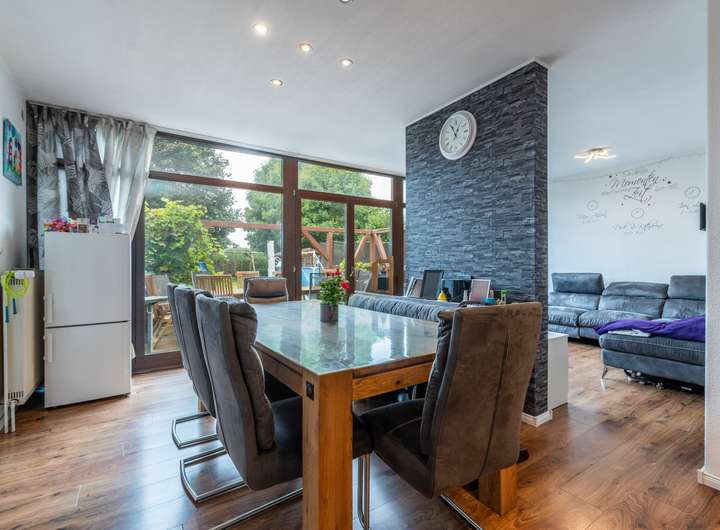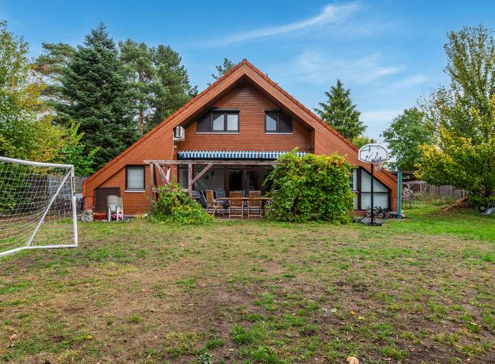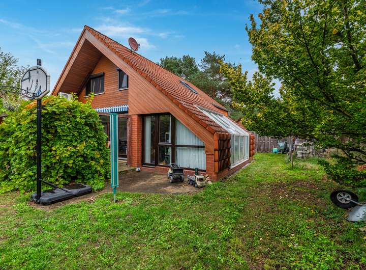 Dieses gepflegte Einfamilienhaus aus dem Jahr 1994 bietet auf einer Wohnfläche von ca. 128 m² viel Platz für die Familie und Paare. Das großzügige Grundstück mit ca. 890 m² Fläche überzeugt mit einer schönen Einfahrt, mehreren Stellplätzen, einem Gartenhaus sowie ausreichend Raum zur individuellen Gartengestaltung. Die Immobilie verfügt über eine hochwertige Einbauküche (ca. 10 Jahre alt), große Fensterfronten für helle Räume sowie Klimaanlagen im Obergeschoss. Beim Betreten des Hauses gelangen Sie in den Eingangsbereich. Links befindet sich das Gästebadezimmer, Hausanschlussraum und Heizung. Dahinter liegt der Hauswirtschaftsraum, großzügig angelegt verfügt der Raum über die Möglichekeit, zum Beispiel eine große Gefriertruhe unterzubringen. Folgt man dem Flur, öffnet sich der großzügige Wohn- und Essbereich mit offener Küche. Von hier aus haben Sie Zugang zu einem Wintergartenbereich auf der linken Seite sowie zu einem separaten Büro- und Fitnessbereich (Rückbau auf Carport möglich) mit auf der rechten Seite. Das Wohnzimmer wirkt dank seiner Fensterfront lichtdurchflutet, eine einfach zu demontierende Trennwand, die als Raumteiler installiert wurde, unterteilt den Essbereich vom Wohnzimmer ab, beidseitig dennoch zugänglich. Die Küche ist maßgeschneidert integriert und bietet genügend Platz zum zubereiten Ihrer Mahlzeiten und ausreichend Bewegungsfreiheit. Das Obergeschoss beherbergt ein Badezimmer mit Badewanne und Dusche, ein Schlafzimmer, zwei Kinderzimmer sowie einen Dachboden, der zusätzlichen Stauraum bietet. Dank des hohen Kniestock weren die Räumlichkeiten optimal genutzt. Das Nurda Haus hat Dank seiner Holzbauweise, den großen Vorteil, dass Umbauten einfach vonstatten gehen. Sollten Sie eine Tür zum Wintergarten nicht nutzen wollen, wie die an der Küche, so können solche Maßnahmen einfach und schnell bewerkstelligt werden. Das große Grundstück bietet neben einer schönen Einfahrt mit mehreren Stellplätzen auch ein Gartenhaus. Der Garten lädt zum Verweilen ein und bietet viel Platz für Freizeit, Kinder und Hobby. Mit seiner durchdachten Raumaufteilung, den besonderen Extras wie Wintergarten und Fitnessraum sowie dem großzügigen Grundstück bietet es ideale Voraussetzungen für Familien, die Wohnen und Arbeiten miteinander verbinden möchten.
