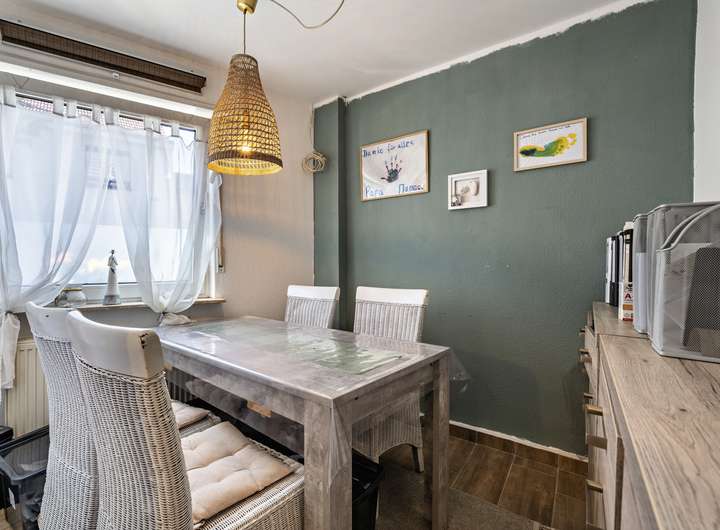 Zu der Immobilie zählen im Erdgeschoss eine große Wohn-/Essküche mit separatem Essbereich, ein Badezimmer, ein großes Wohn-/Esszimmer und ein Wasch-/Trockenraum. Im Obergeschoss erwarten Sie drei einladende Schlafzimmer sowie ein weiteres Badezimmer.