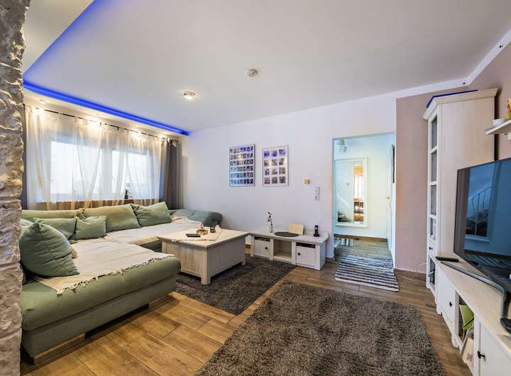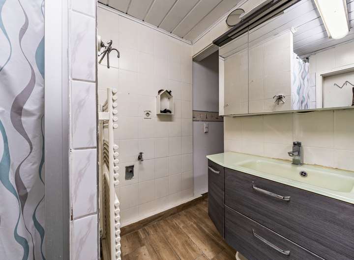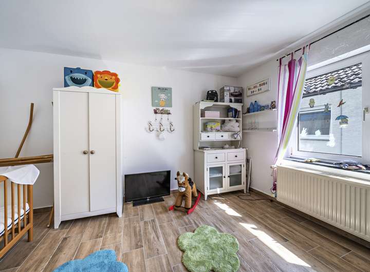 Das Wohnhaus ist weißen Kunststofffenstern mit Rollläden, Fliesen in Holzoptik und weißen Innentüren ausgestattet. Im Erdgeschoss befindet sich ein Badezimmer mit Dusche und im Obergeschoss ein Bad mit Badewanne.
