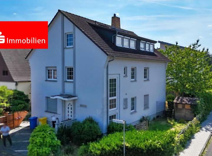 Für Kapitalanleger oder für die große Familie mit Gewerbe gleichermaßen: Repräsentantives Wohn-/Geschäftshaus mit 3 abgeschlossenen Einheiten in top Lage von Hanau - Steinheim. Die insgesamt 161 m² Wohnfläche (im EG und DG) und 78 m² Gewerbefläche (im 1. OG) des Hauses bieten ausreichend Platz für Wohnen und Gewerbe. Die Einheit im 1. OG wurde in der Vergangenheit als Bürofläche genutzt und ist aktuell als Gewerbefläche ausgewiesen. Eine offizielle Nutzungsänderung zu Wohnzwecken ist voraussichtlich problemlos möglich. Die Wohnung im Erdgeschoss ist 84 m² groß und besteht aus einem zentralen Flur mit Zugängen zu dem separaten WC, dem Badezimmer, dem großen Schlafzimmer, der Küche mit Durchreiche zum Essbereich sowie dem sehr großen und hellen Wohn-/Esszimmer mit Zugang zur Terrasse und Garten. Hier könnte ein Teilbereich wieder zu einem weiteren Zimmer abgetrennt werden. Die in der Vergangenheit als Büro genutzte Einheit im 1. Obergeschoss ist insgesamt etwa 82 m² groß und hat neben der insgesamt 4 weitere Zimmer sowie einen als Büroküche genutzten Raum. Über einen zur Gartenseite liegenden Raum, erreichen Sie den Balkon im 1. Obergeschoss. Aktuell ist hier kein Badezimmer eingebaut. Im Dachgeschoss befindet sich die mit etwa 78 m² ebenfalls gut geschnittene 2. Wohnung des Hauses. Hier befinden sich nochmals 3 Zimmer, eine Küche, ein zentraler Flur und ein Badezimmer. Hier wurden bereits Umbaumaßnahmen begonnen, aber krankheitsbedingt nicht mehr fertiggestellt. Das Haus ist voll unterkellert. Die ursprünglich im Keller befindliche Garage wurde als zusätzliche Lagerfläche verwendet. Auf der ehemaligen Zufahrtsfläche zur Garage haben Sie freie Stellflächen für mindestens ein KFZ. Das Grundstück ist 478 m² groß. Zusätzlich gibt es die Möglichkeit, auf dem westlich angrenzenden Nachbargrundstück einen KFZ-Stellplatz und/oder eine Garage oder Carport zu errichten und zu Nutzen. Dieses Recht ist grundbuchseitig verbrieft. Das Objekt steht leer und kann jederzeit nach Terminvereinbarung besichtigt werden.