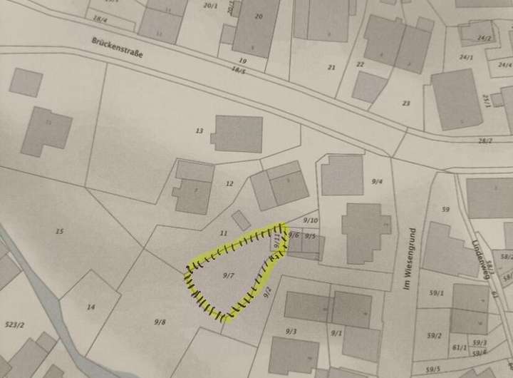 Im Teilort Bruch liegt das Baugrundstück in zweiter Reihe und ist durch eine Privatstraße erreichbar.