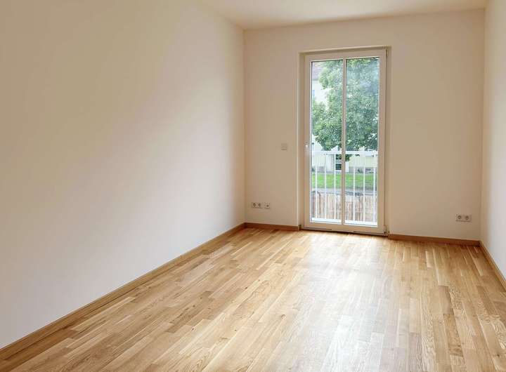 Eine terrassenartige Veranda inklusive Garten rundet den Wohnkomfort des neuen Zuhauses ab.